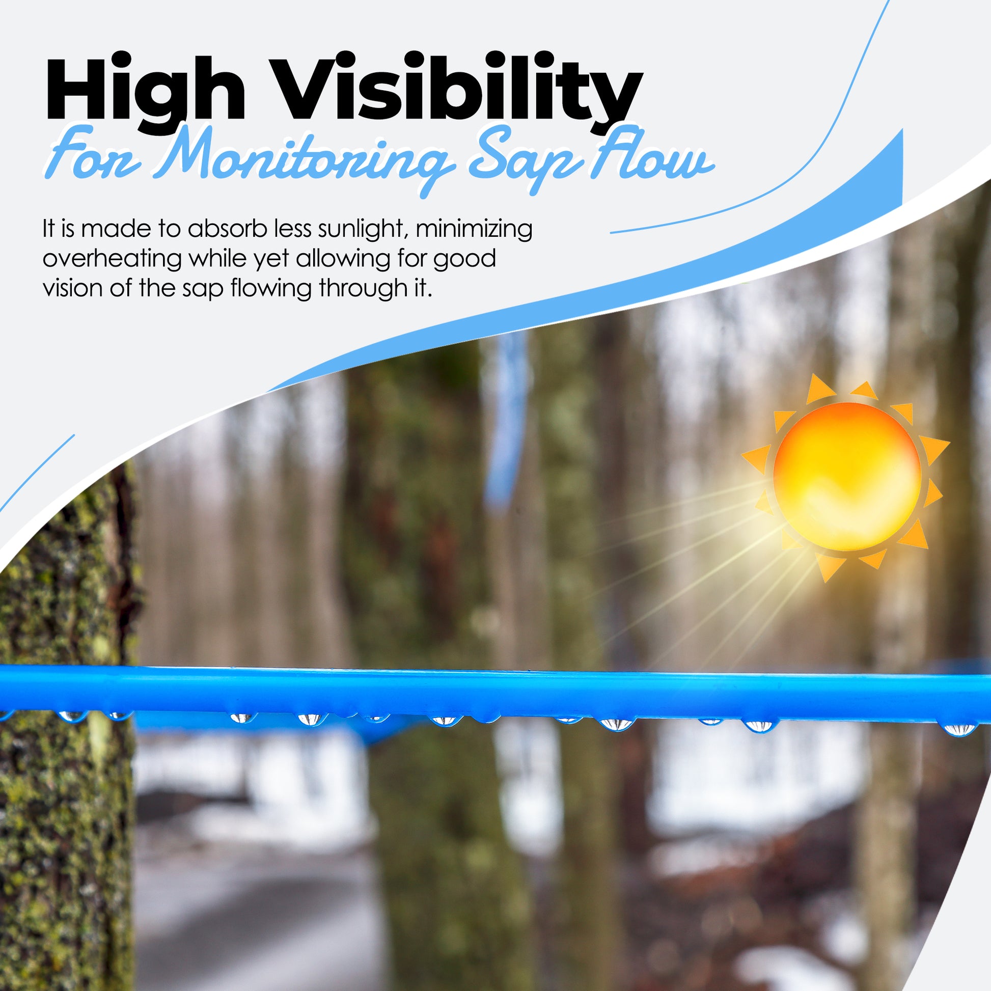 Enhanched Visibility: Our tubing boasts high visibility, which is essential for monitoring sap flow. It's designed to draw less sunlight, preventing excessive heating, yet still provides clear visibility of sap running through it. This ensures efficient sap collection without compromising the quality of your syrup.