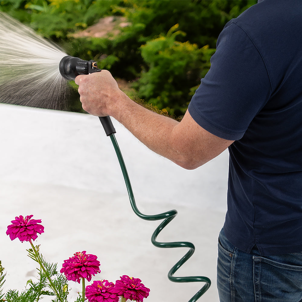 Space Saving Convenience - Unlike straight conventional hoses, SpringHose actually puts itself away! Its unique coiled design stretches to over 80% of its advertised length and effortlessly recoils to its compact length, saving valuable storage space.